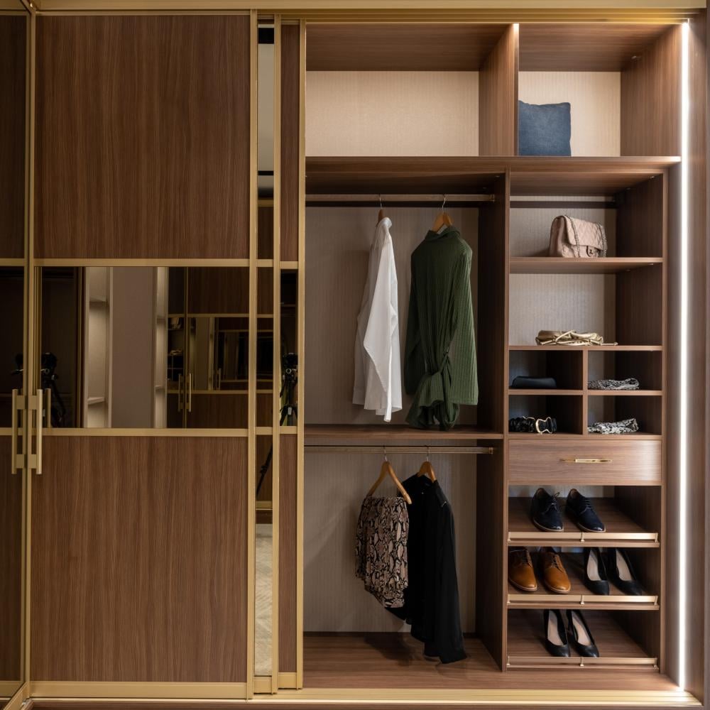 خزانة ملابس أنيقة بتصميم عصري، مزودة بأبواب سحاب عملية وألوان محايدة تمنح الغرفة مظهرًا متناسقًا مع أي ديكور.